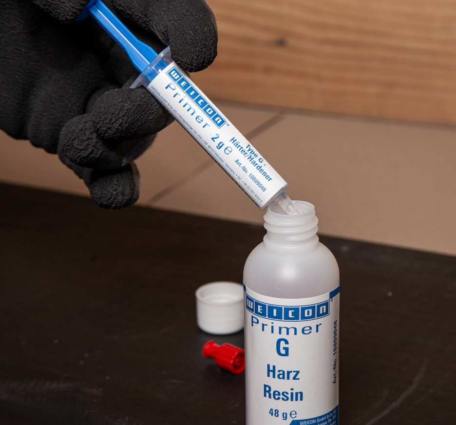 WEICON Belt Repair-Kit is a 2-component polyurethane system for the fast repair and coating of rubber surfaces. It has a high curing speed, high elasticity and wear resistance, is impact-resistant and abrasion-resistant, and has a particularly high tear resistance. Thanks to its high mechanical strength, it is suitable especially for repairs on rubber and metal components, which are exposed to impacts, abrasion or vibrations. The Belt Repair-Kit offers fast and easy processability. The system is suitable for various applications, such as the repair and coating of conveyor belts, the repair of rubber coatings, for use as flexible wear protection, and for the fast repair of worn-out rubber surfaces. In addition to the polyurethane system, the set comprises a primer for surface pre-treatment, and a spatula to spread the compound evenly. In order to cover a broader application range, in addition to the classic 500 g working package, which needs to be mixed by hand, the product is also available as easy-to-use 540 g double cartridge.