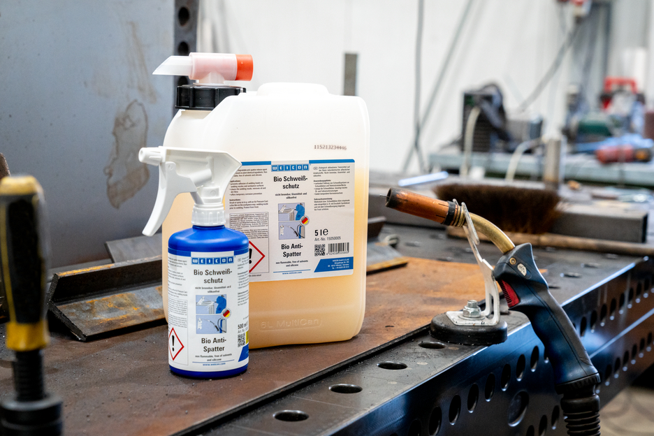 WEICON Bio-Welding Protection provides temporary corrosion protection. It does not contain chlorinated hydrocarbons, other solvents or silicones. Bio-Welding Protection is produced on the basis of hazelnut and sunflower extracts and is biodegradable according to EU directives. WEICON Bio-Welding Protection Anti-Spatter prevents the adhesion of weld spatter to gas nozzles and work-pieces without affecting the quality of the weld seam.