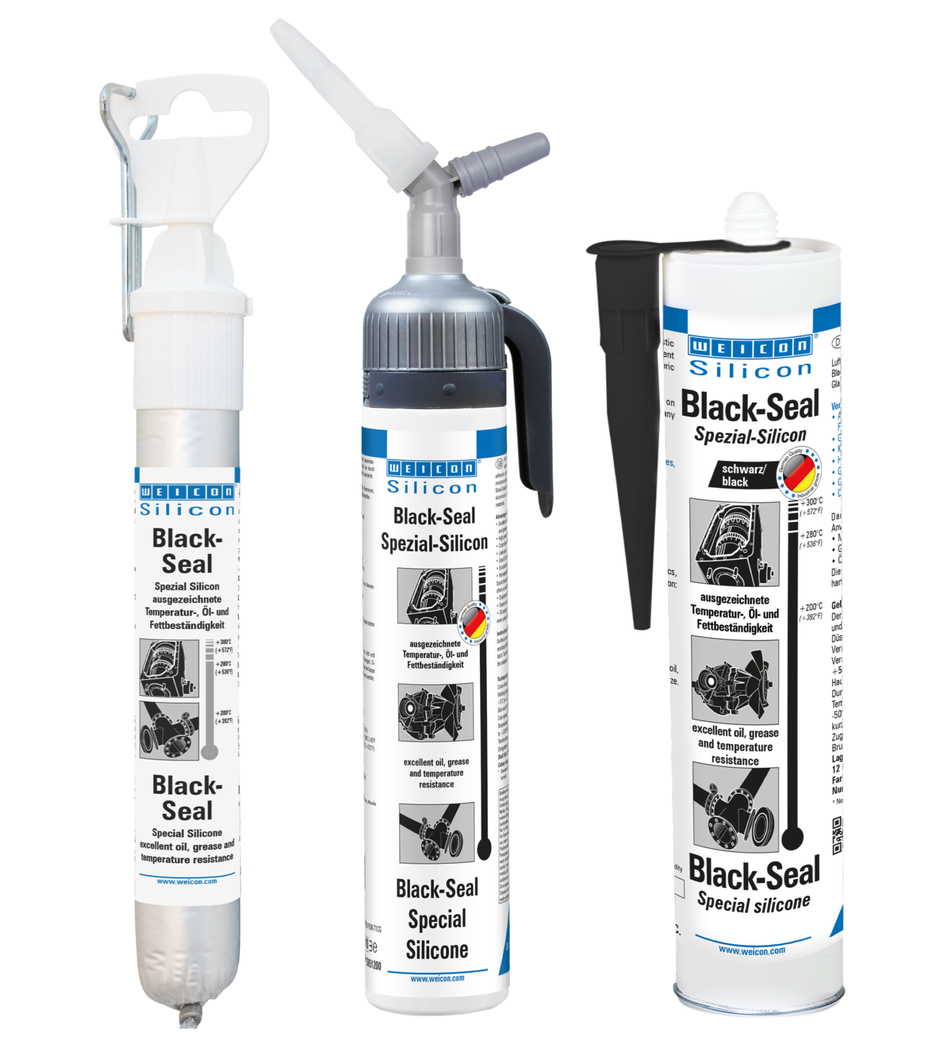 WEICON Black-Seal is black, high-temperature-resistant (+280 °C/+536 °F), free of solvents, strong, oil-resistant, grease-resistant, pressure-resistant, resistant to ageing and extremely elastic (breaking elongation of approx. 500%). It is suitable for bonding and sealing in applications where particularly high oil and grease resistance is required. The product can be used on gearbox, valve and casing covers, oil sumps, water pumps, gears and axles, flanges, tanks and containers, and in many other areas.