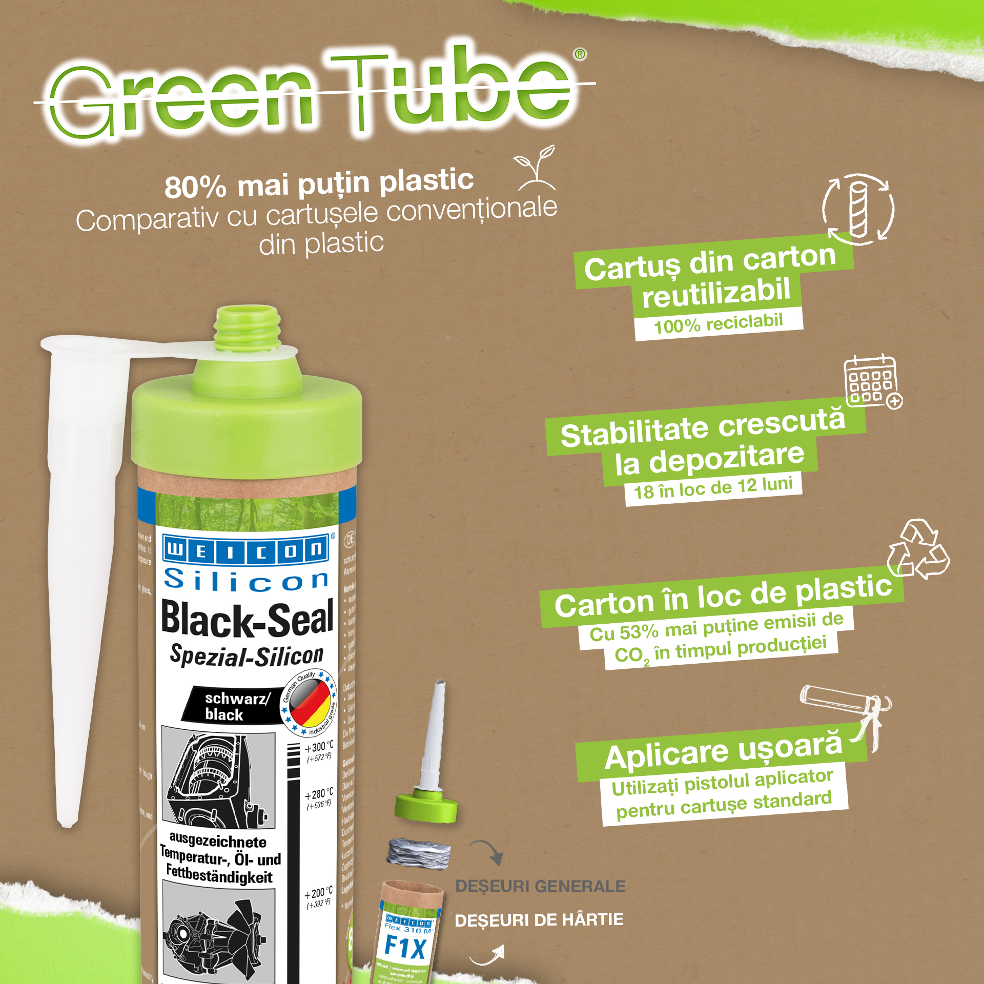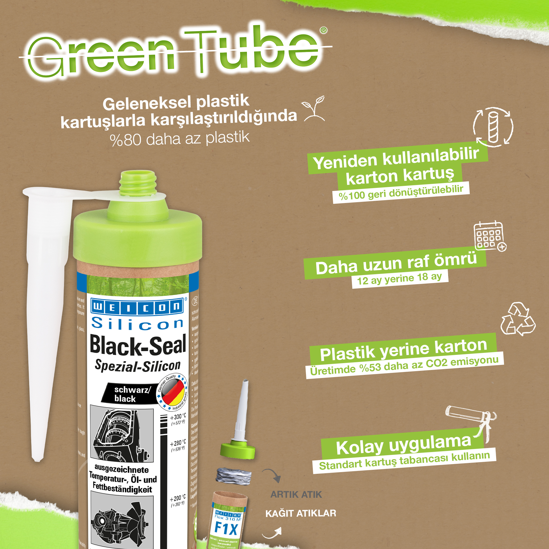 WEICON Black-Seal is black, high-temperature-resistant (+280 °C/+536 °F), free of solvents, strong, oil-resistant, grease-resistant, pressure-resistant, resistant to ageing and extremely elastic (breaking elongation of approx. 500%). It is suitable for bonding and sealing in applications where particularly high oil and grease resistance is required. The product can be used on gearbox, valve and casing covers, oil sumps, water pumps, gears and axles, flanges, tanks and containers, and in many other areas.