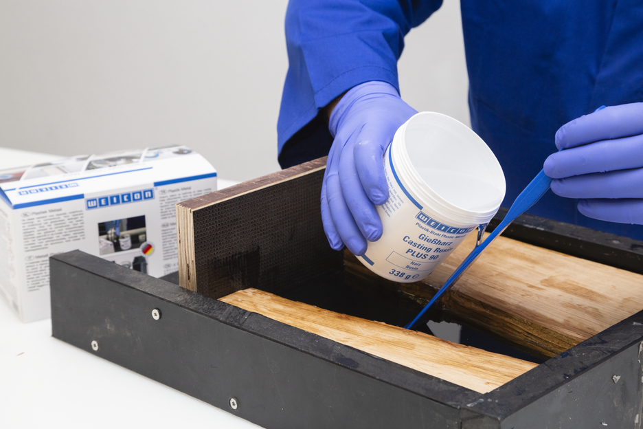 The epoxy resin system Casting Resin Plus 90 is a casting compound which cures crystal clear. Its special formulation allows high layer thicknesses up to 90 mm. The compound can also be used to coat sensitive surfaces and protects against damages. The casting resin has a low viscosity, high mechanical stability, is impact-resistant, has a high moisture resistance and a good UV resistance. It can be processed very well manually and mechanically - whether by grinding, filing or drilling. Casting Resin Plus 90 is particularly suitable for applications with high optical requirements. Whether in the production of design objects, furniture construction, trade fair construction, yacht and boat building, wood processing, arts and crafts, or gardening and landscaping - the casting resin is suitable for a wide range of applications.