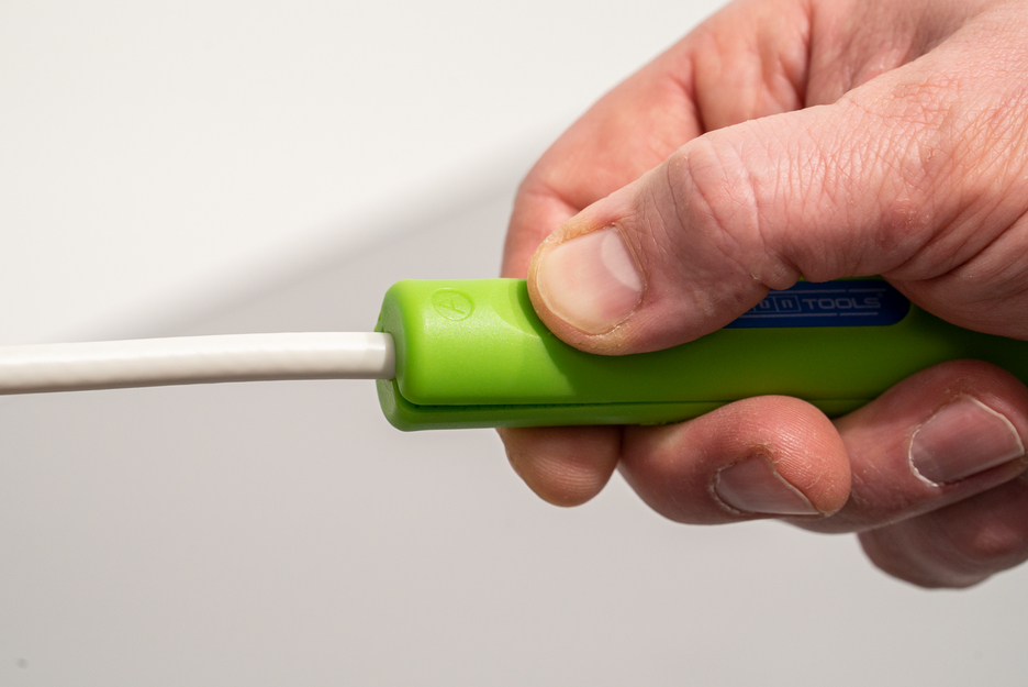 Working range 4.8 - 7.5 mm Ø Adjusting the cutting depth not required Also suitable for flexible cables Length scale (0 - 17 mm) integrated in the housing Two-level stripping of all common coaxial cables