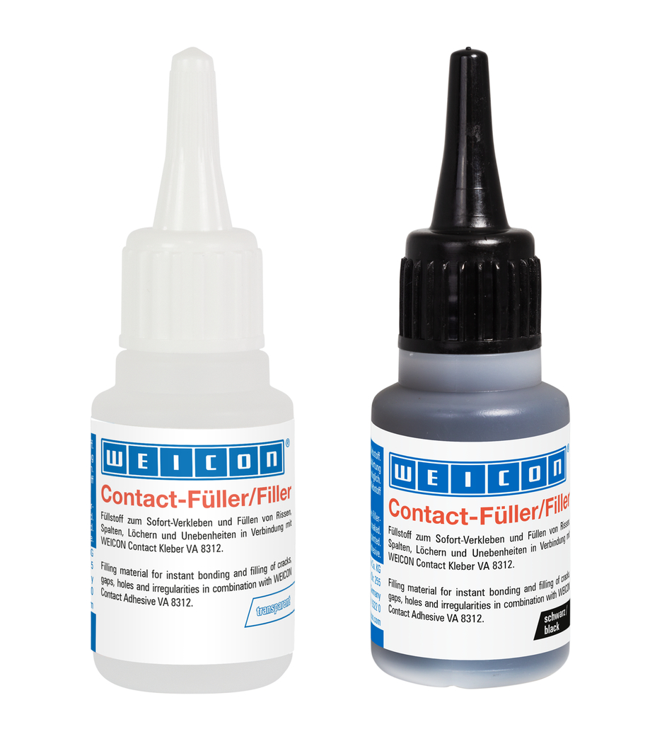 Fillers for instant bonding and filling-in of clefts and cracks, holes as well asunlevelled surfaces in combination with WEICON Contact Adhesive WEICON VA 8312.