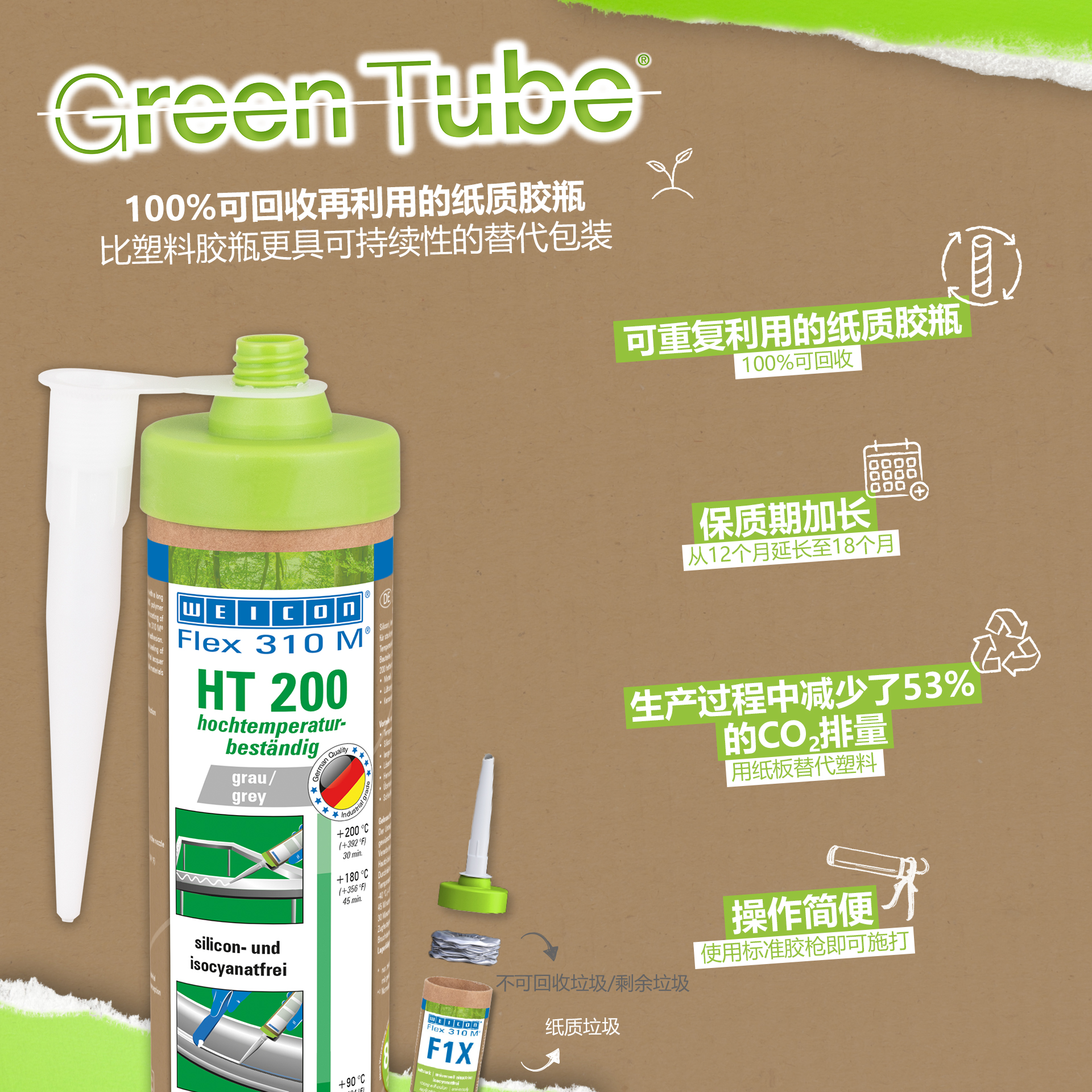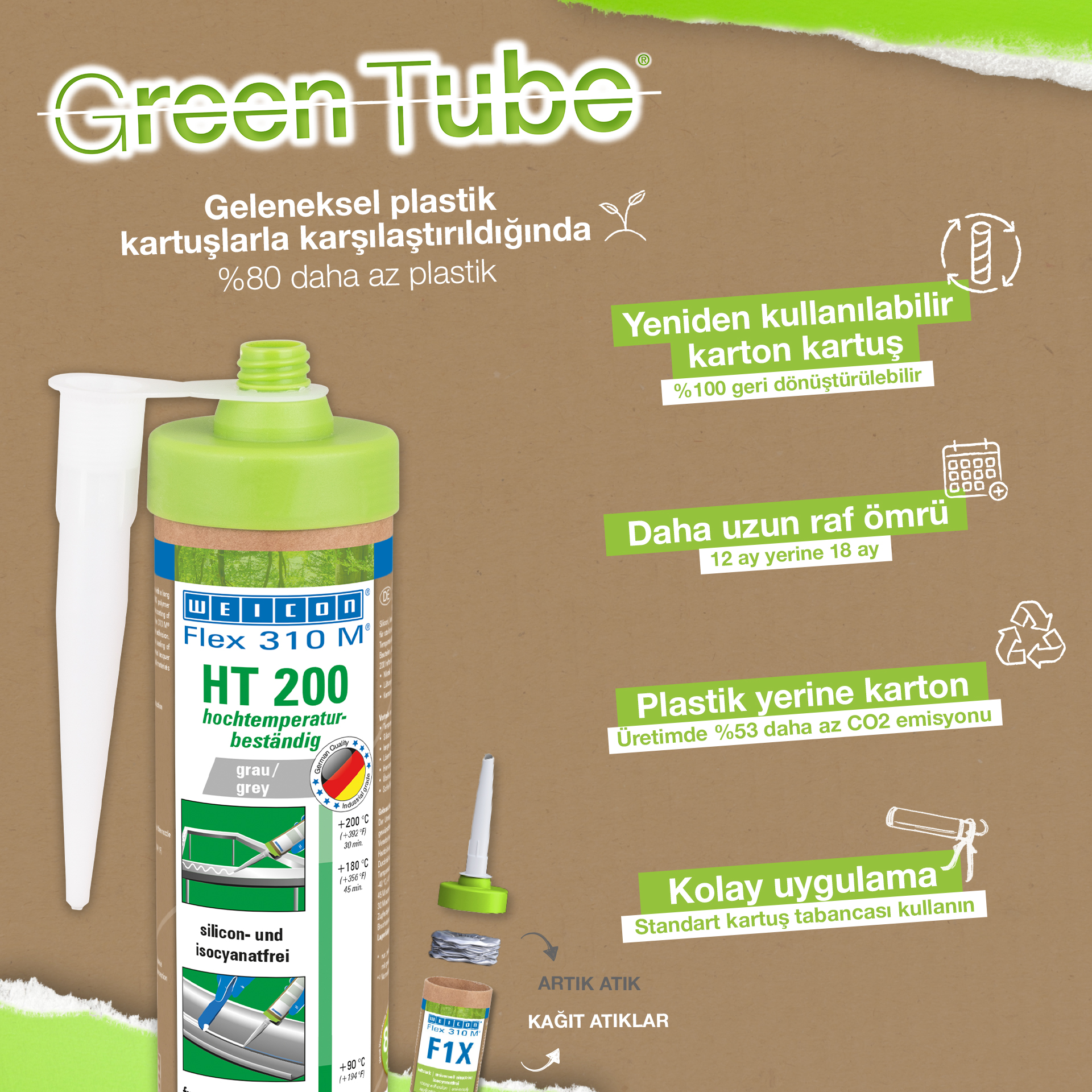 The high temperature resistance makes it possible to bond and seal components, which will be thermal-coated (powder-coated) afterwards. WEICON Flex 310 M HT 200 can be used in metal construction, tank and apparatus engineering, in ventilation and air conditioning systems, carriage, container, wagon and vehicle construction. WEICON Flex 310 M HT 200 Adhesive and Sealant is resistant even to high temperatues, has an outstanding resistance to ageing and is free of silicone, isocyanate, halogens and solvents.