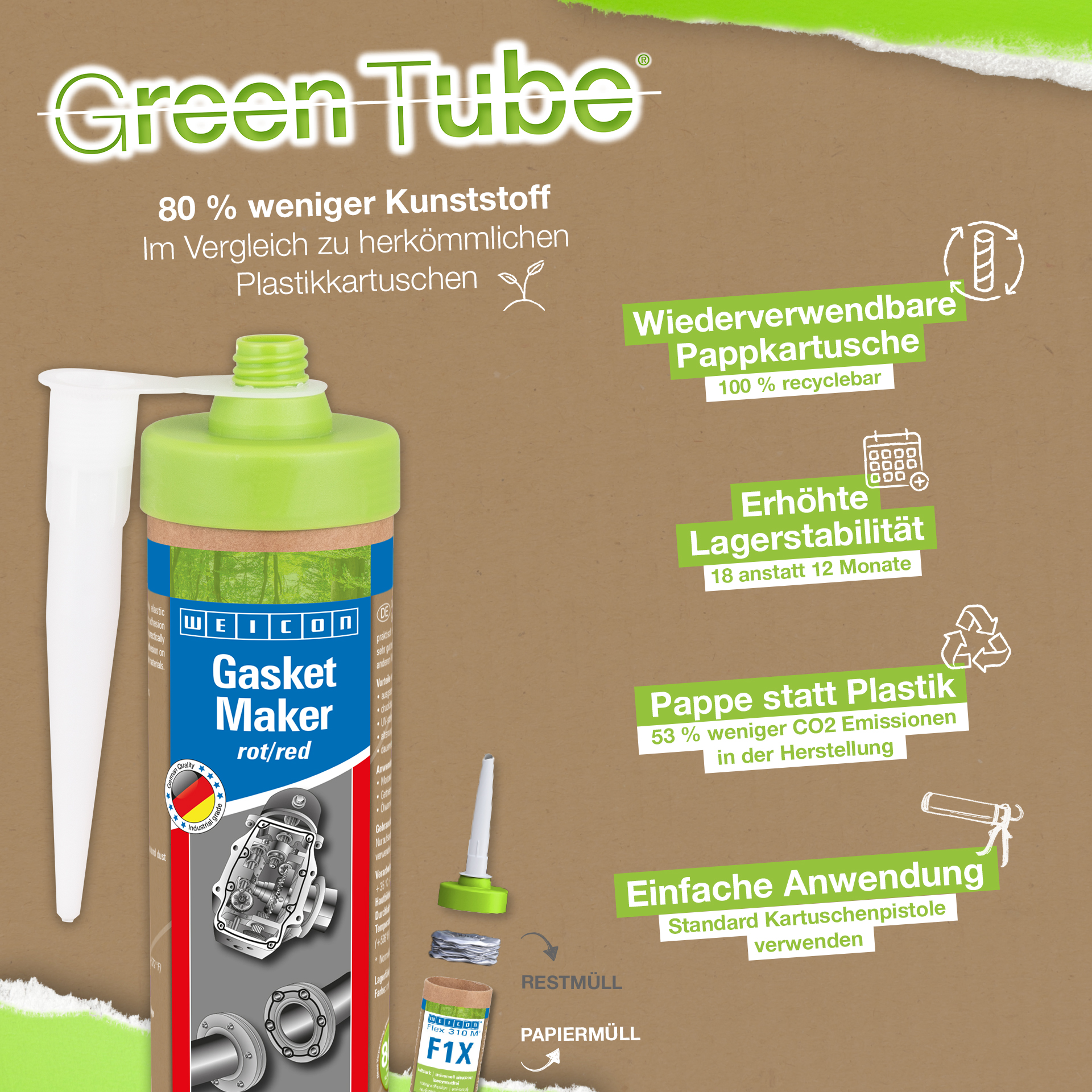 WEICON Gasket Maker is a strong and permanently elastic special sealant that cures with air humidity and practically without shrinkage. Gasket Maker shows very good adhesion to steel, aluminium, glass, ceramic, and many other materials. Gasket Maker has an excellent temperature, oil and grease resistance, is resistant to pressure, ageing and UV radiation and is permanently elastic. The special sealant can be used on engines and water pumps, gears and axles, oil sumps and in many other applications.
