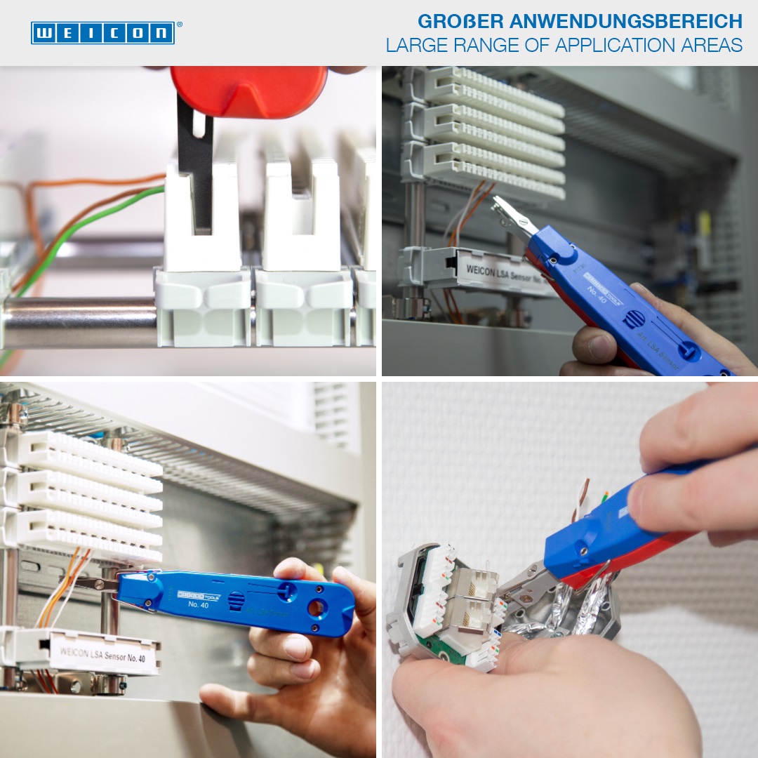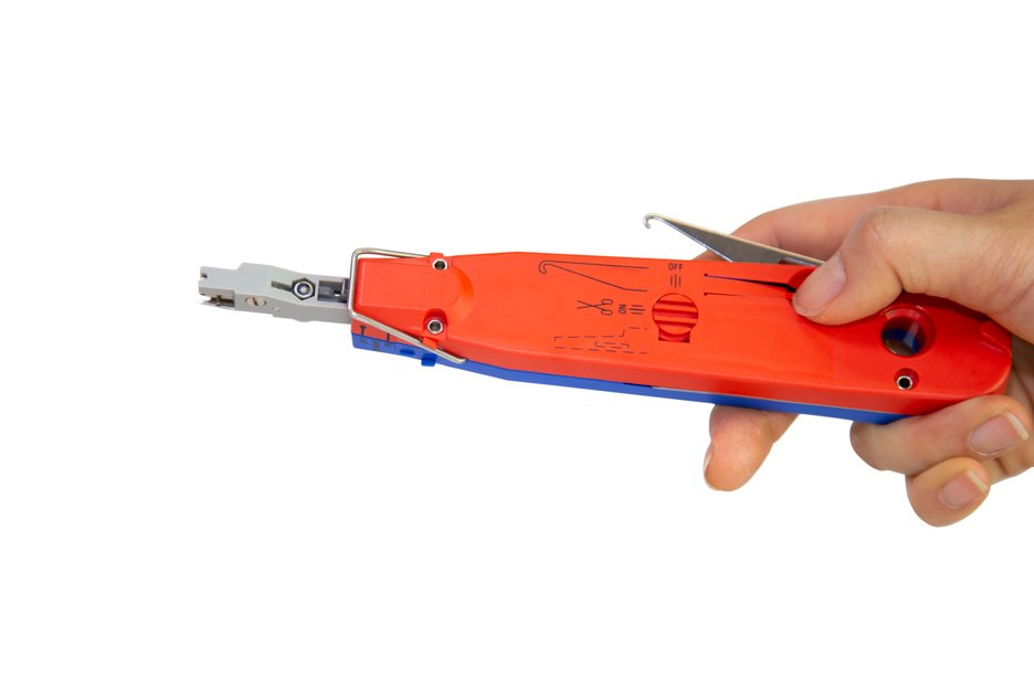 For the solderless, screwless and no-stripping inserting and simultaneously cutting of wire ends into LSA punch-down blocks