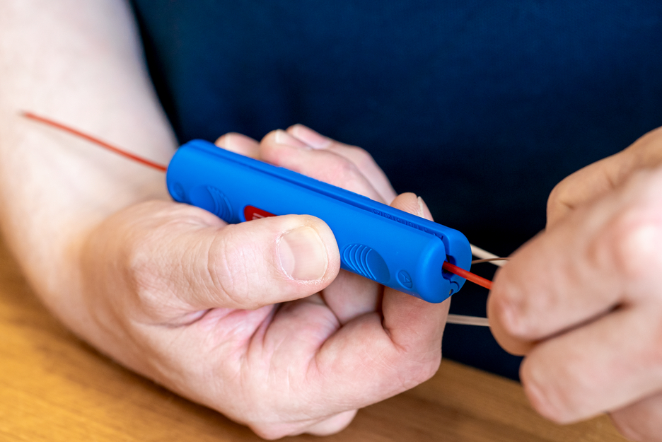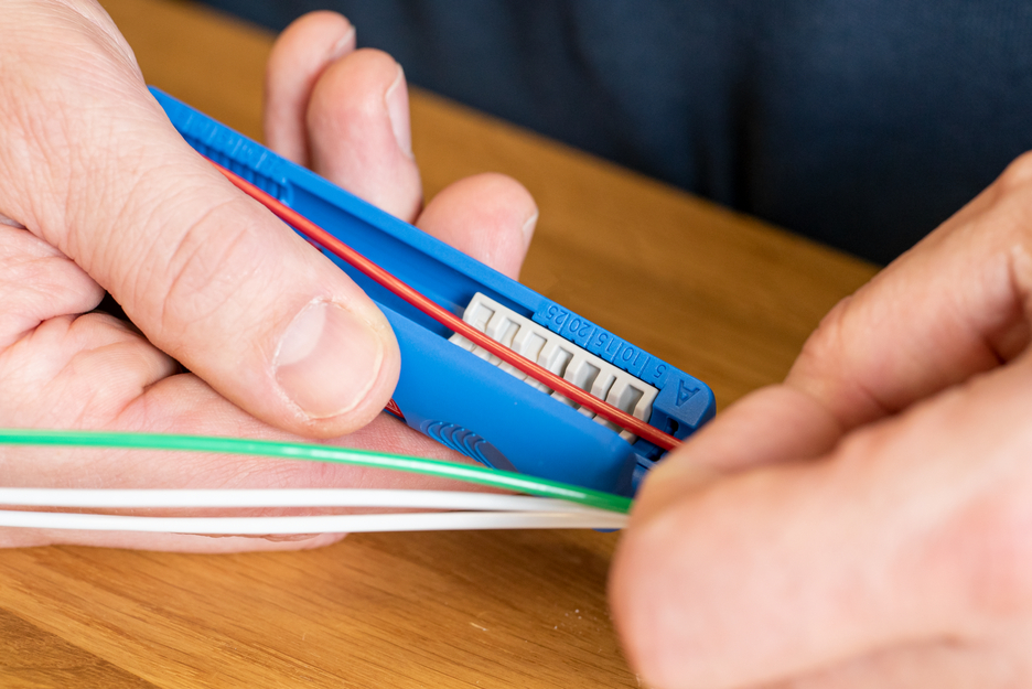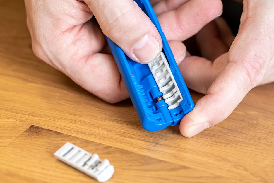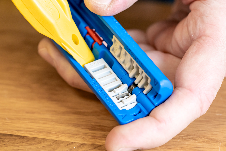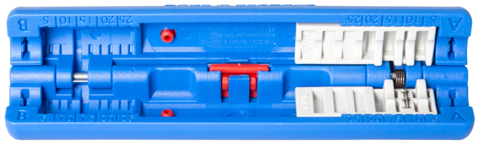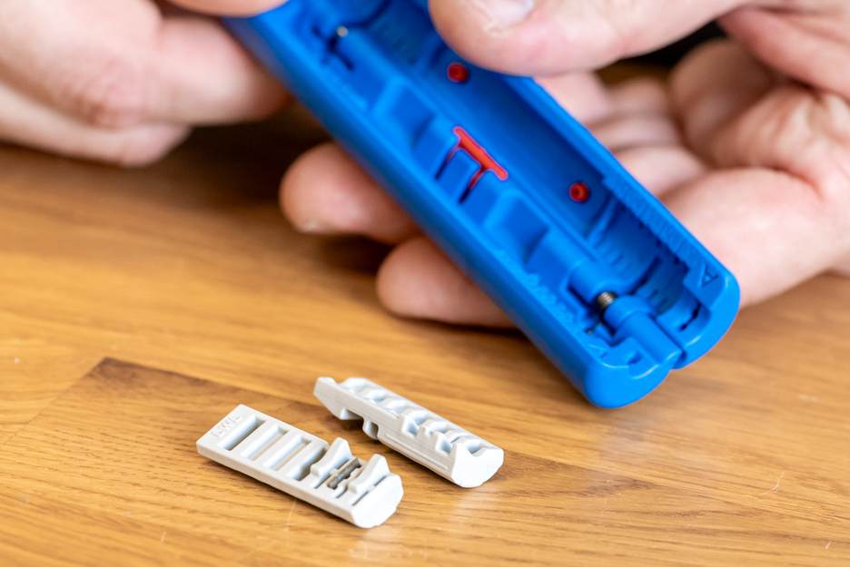 With the Profibus Stripper No. 2, the outer sheath and the underlying shield can be cleanly cut in order to strip the Profibus cable according to its connector. The optical length scale in the module can be used to select the appropriate stripping length to prepare the Ethernet cables to fit the FastConnect connector. For the stripping lengths of 17 mm, 20 mm, 24 mm and 30 mm, the usual dimensions are visually marked in the module. The stripper was developed to cut Profibus cables in the range of 5.5 mm to 8 mm with two pairs of blades simultaneously for a precise fit. The cutting pattern creates an ideal preparation for FastConnect connectors - even with different cable diameters. If necessary, the pairs of knives in the half-shells can be replaced or renewed as modules.