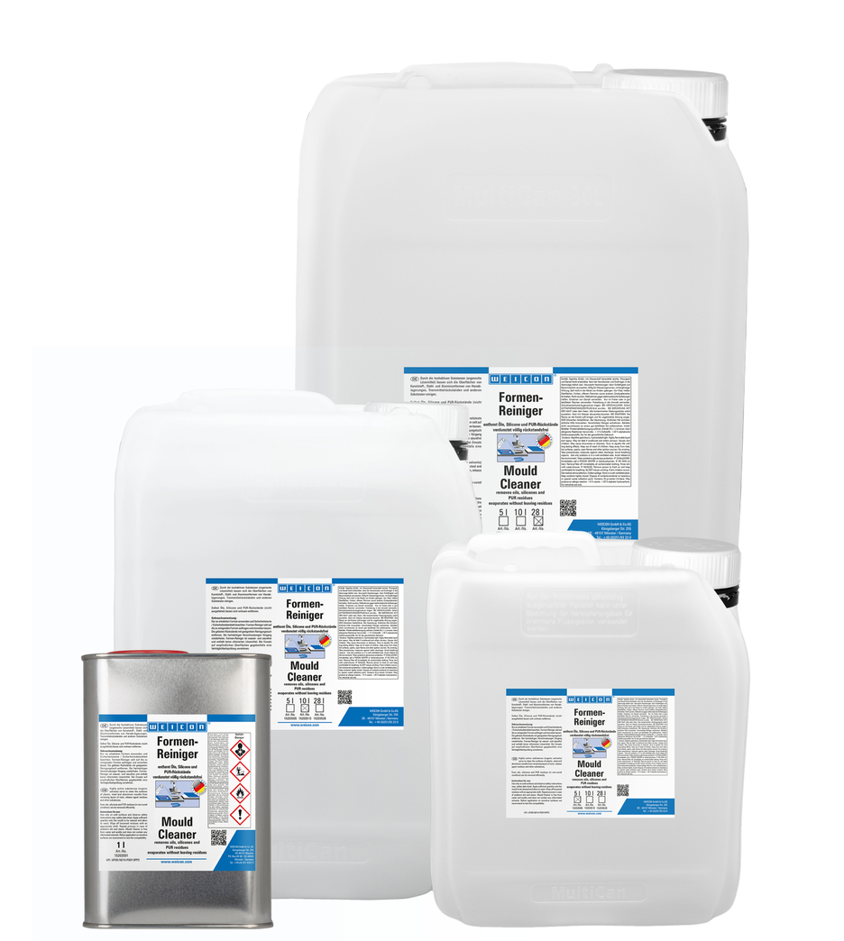 WEICON Mould Cleaner effectively removes waxes, silicones, oils, non-cured PUR residues and other impurities from plastic, steel or aluminium moulds.