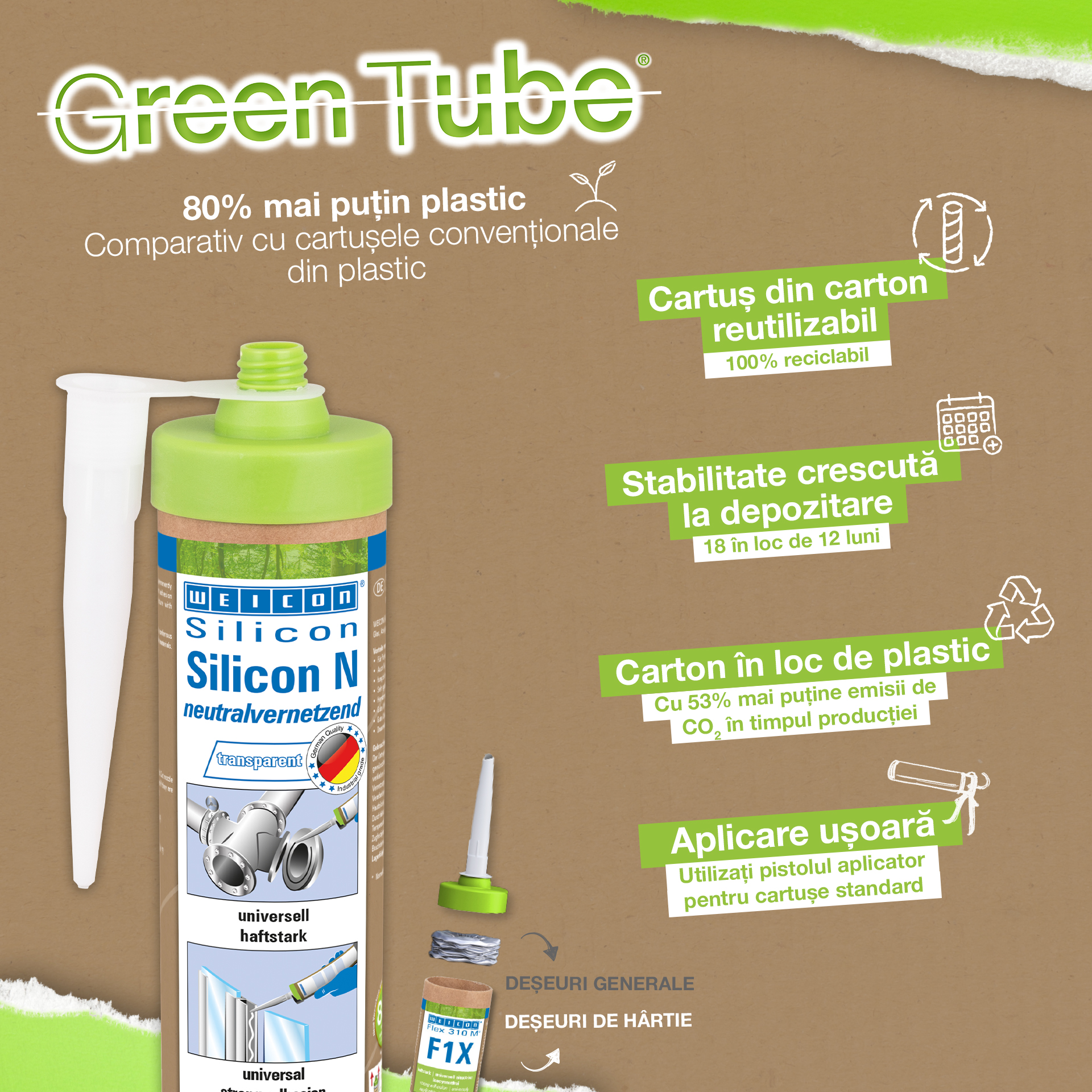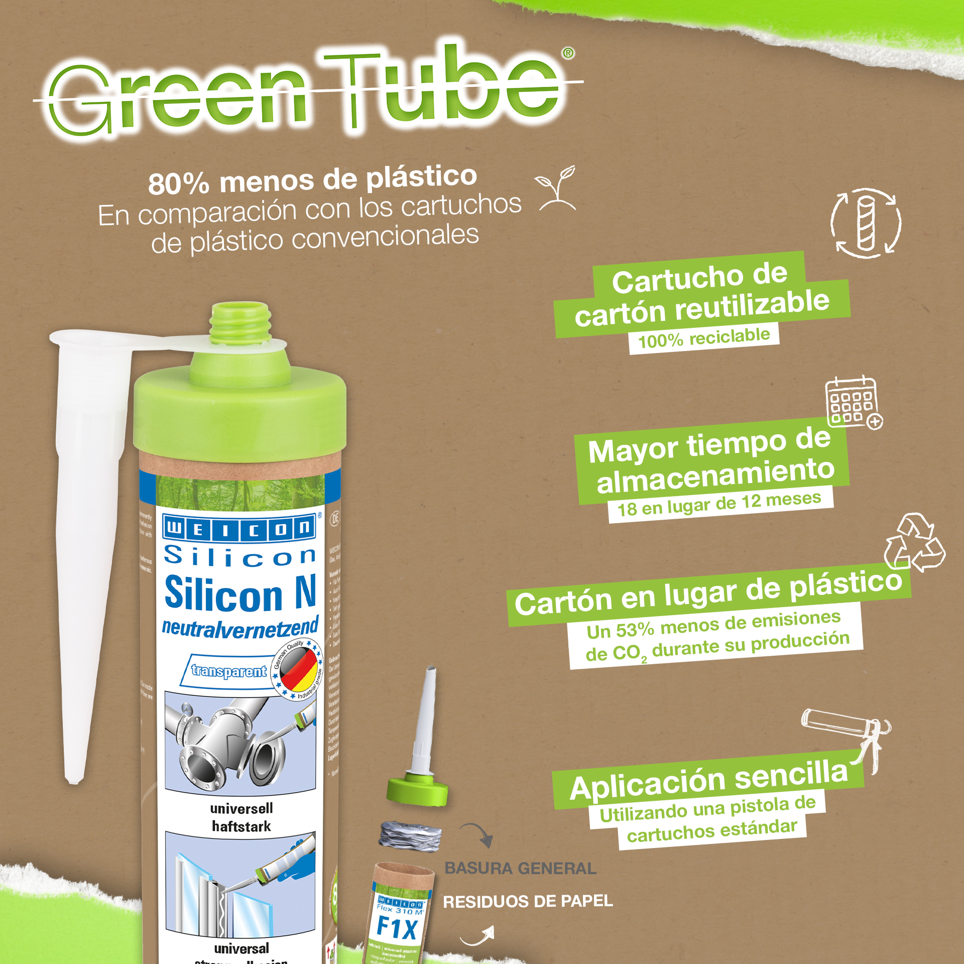 WEICON Silicone N is free of solvents, neutrally vulcanizing, strong, permanently elastic, resistant to weathering, ageing and chemicals, temperature-resistant up to +180 °C (+356 °F), extremely elastic (breaking elongation of approx. 550%) and can be used universally. Silicone N adheres very well to all metals, glass, ceramics, and many other materials. Silicone N can be used in plastic processing, the electrical industry, energy technology, the lighting industry, exhibition construction and shopfitting, and in many other industrial areas.