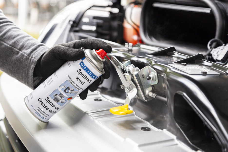 WEICON Spray-on Grease white is a multi-purpose sprayable grease with outstanding adhesive strength and excellent resistance to ageing and pressure. By adding special wear-reducing and corrosion-inhibiting additives, temperature stability from -20 °C to +150 °C (-4 to +302 °F) in combination with a long service life can be achieved. As with transparent products, a visual inspection is possible at all times. WEICON Spray-on Grease white can be used for the long-term lubrication of rods, gearwheels, rollers, ball bearings, hinges, guides and all types of joints and couplings in many industrial applications.