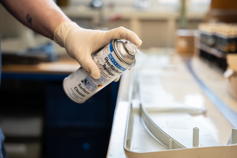 WEICON Surface Cleaner is used for the cleaning and degreasing of surfaces to be joined or sealed with WEICON Adhesives and Sealants. Surface Cleaner can be used on materials like metal, glass, ceramics and most plastics, and evaporates without residues. Check surface compatibility prior to use. WEICON Surface Cleaner can also be used to clean and degrease machine components in the course of maintenance works.