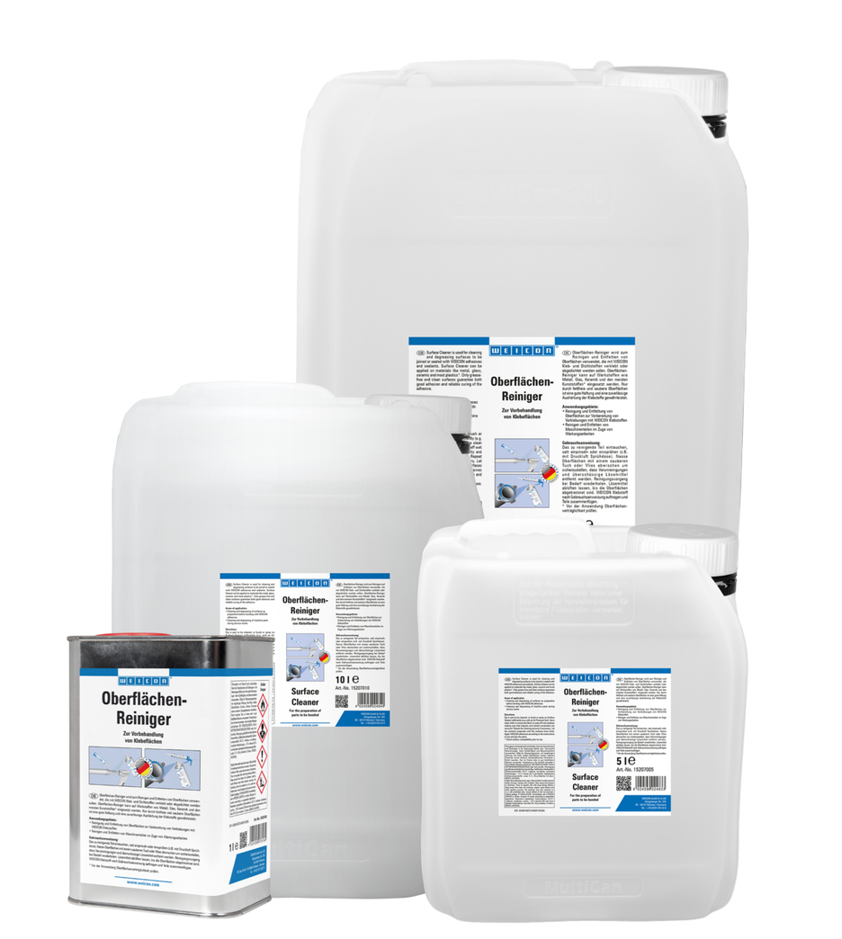 WEICON Surface Cleaner is used for the cleaning and degreasing of surfaces to be joined or sealed with WEICON Adhesives and Sealants. Surface Cleaner can be used on materials like metal, glass, ceramics and most plastics. It can be used, for example, to clean and degrease machine components during maintenance works.
