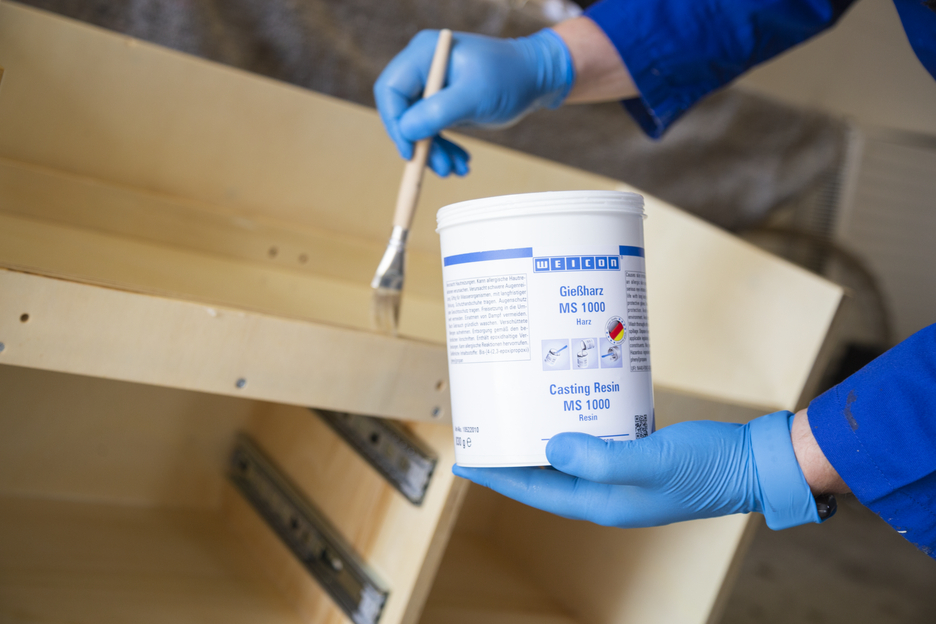 WEICON Casting Resin MS 1000 is a transparent and very flowable epoxy resin system with high mechanical strength. It is suitable for a wide range of applications. MS 1000 adheres well to metal, wood, rigid foam and many plastics. It can be used for large-surface adhesive bonding or for laminating composite threaded bushes and screws. Due to its low viscosity, the epoxy resin system is also suitable for the casting of electric components. It can be used for the production of fibre composites, in tool and mould making, in the electrical industry, in machine construction, and in many other industrial fields. MS 1000 shows good wetting and penetration results of glass fabric and therefore is well-suited for laminating glass, aramid and carbon fibre for the production of fibre-reinforced components. It can also be easily combined with different fillers (powdery, fibrous, fabric).