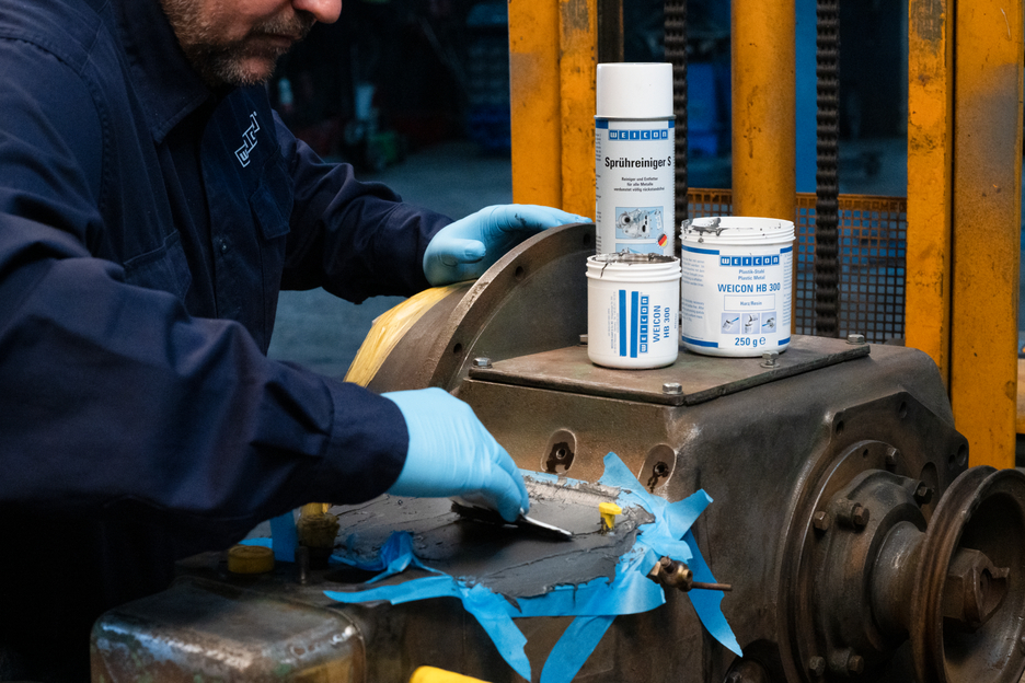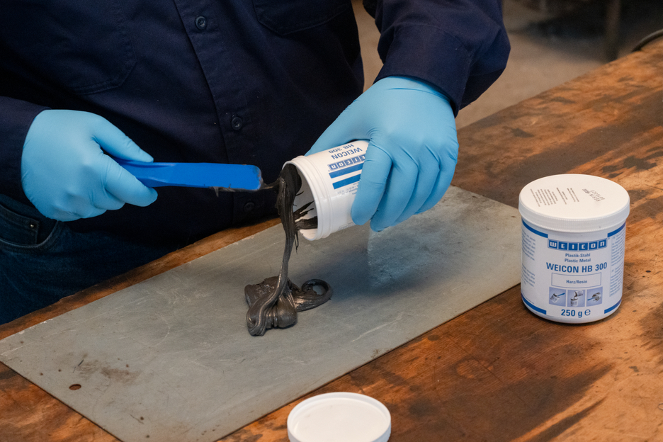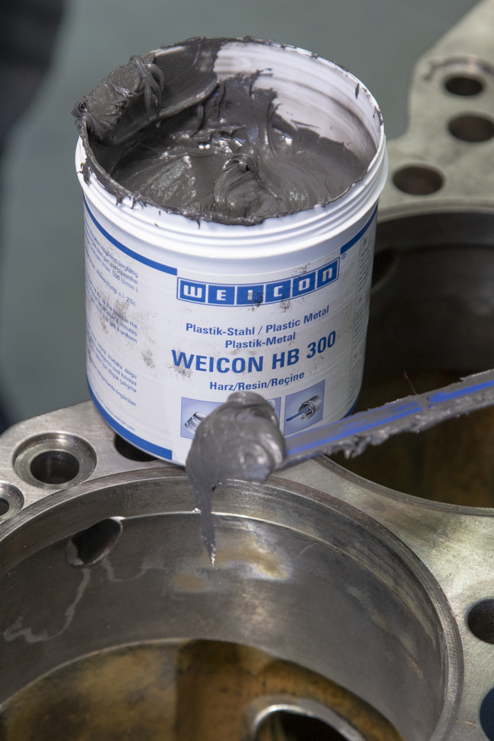 WEICON HB 300 is pasty, steel-filled and high-temperature-resistant up to +200 °C (392 °F) (up to 280 °C/536 °F for a short period of time). It is processed with a mixing ratio of 1:1. The epoxy resin system is also suitable for applications on vertical surfaces and can be used for the repair and bonding of cast and metal parts, for filling in blow holes, for repairing damage on containers, carriages and machine parts and for sealing pumps and pipes. The product can be used in mechanical and plant engineering, in equipment engineering, and in many other areas of industry.