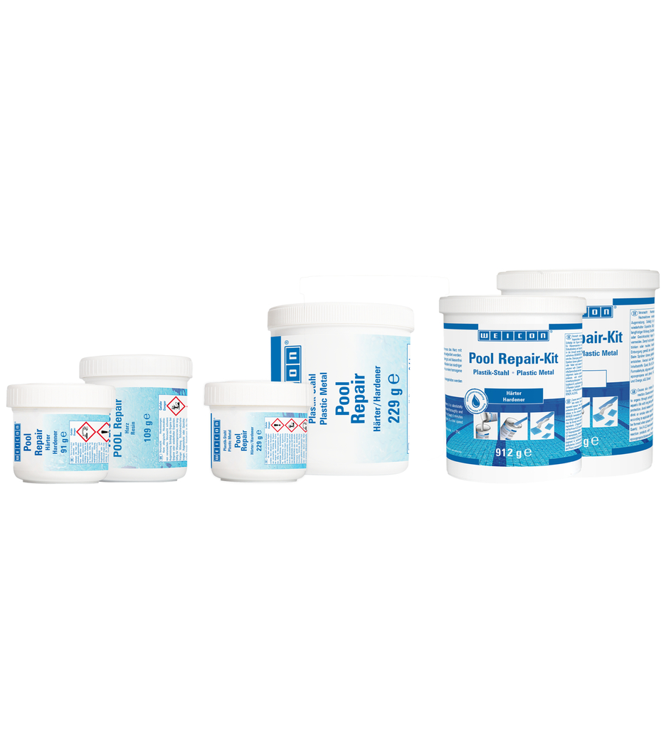 The WEICON Pool Repair-Kit is especially suitable for quick repair work under water. Its excellent adhesive strength enables application on wet surfaces. Thanks to the rapid curing process, it is perfect for repair work on tiles, mosaic tiles, etc.
